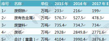 圖表4:2015-2017年我國主要再生資源進(jìn)口情況表(單位:萬噸)